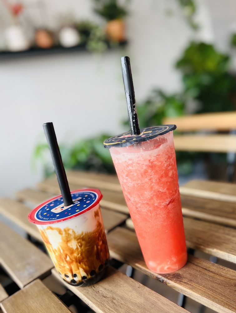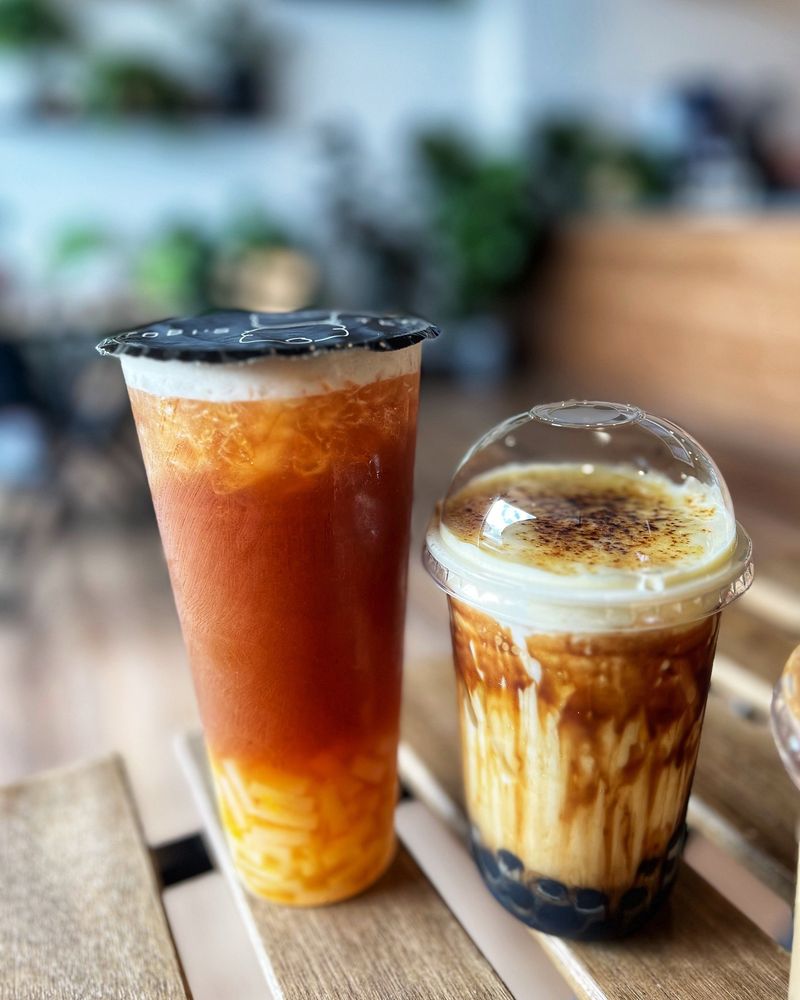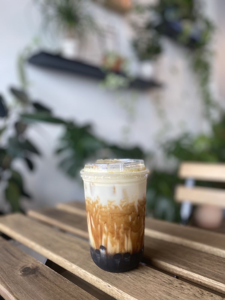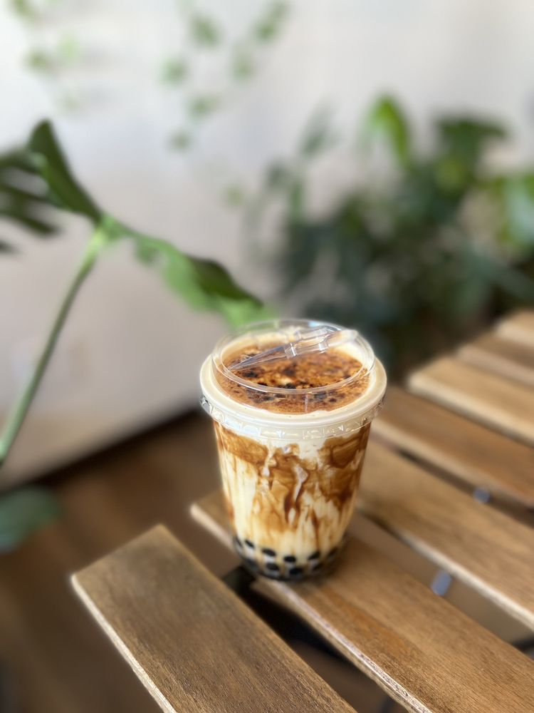 House-made creme brulee served with organic milk and brown sugar boba medium size